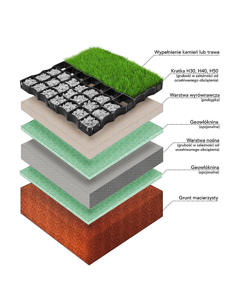 - W celu uniknięcia wzrastania chwastów, bezpośrednio pod kratką można rozłożyć agrowłókninę.